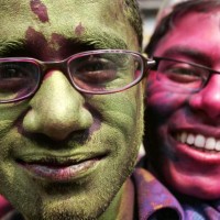На следующий день все обливают друг друга окрашенной водой самых ярких цветов и бросаются разноцветными порошками.