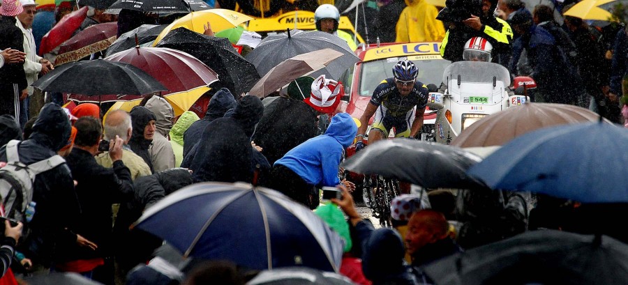 20. Шестой этап гонки Тур-де-Франс-2011 проходил под проливным дождем.
